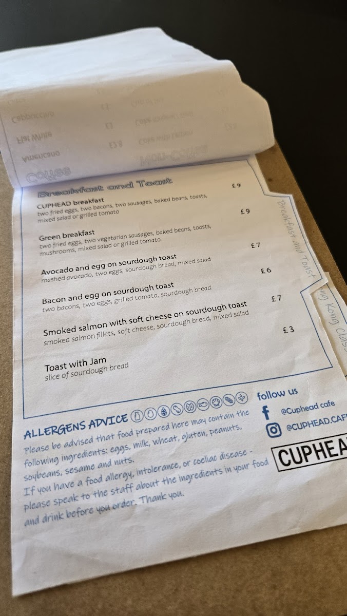 CUPHEAD Cafe Menu